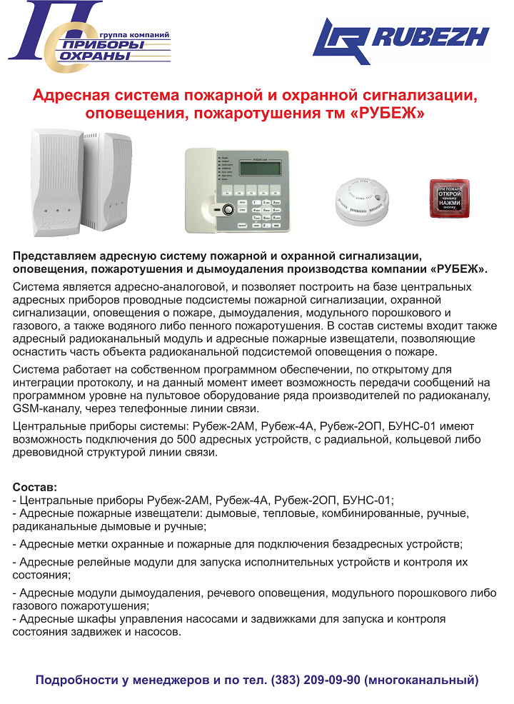 Адресная система пожарной и охранной сигнализации, оповещения, пожаротушения тм «РУБЕЖ»