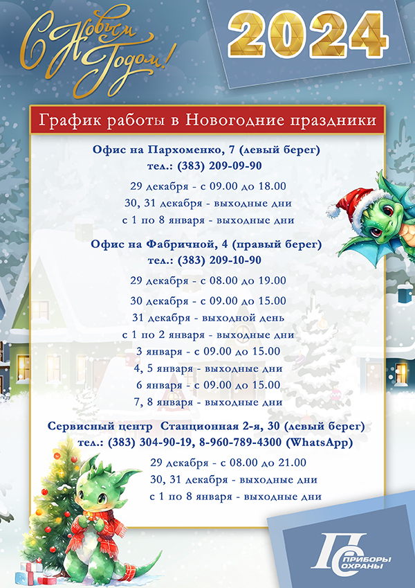 Дорогие друзья! График работы ГК "Приборы охраны" в новогодние праздники!