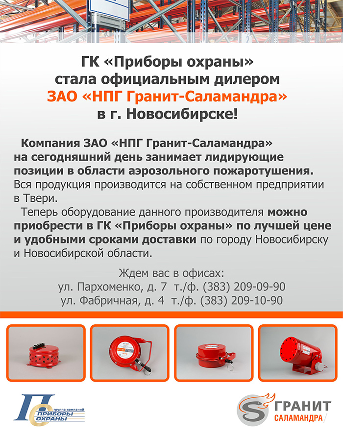 ГК «Приборы охраны» - официальный дилер ЗАО «НПГ Гранит-Саламандра»!