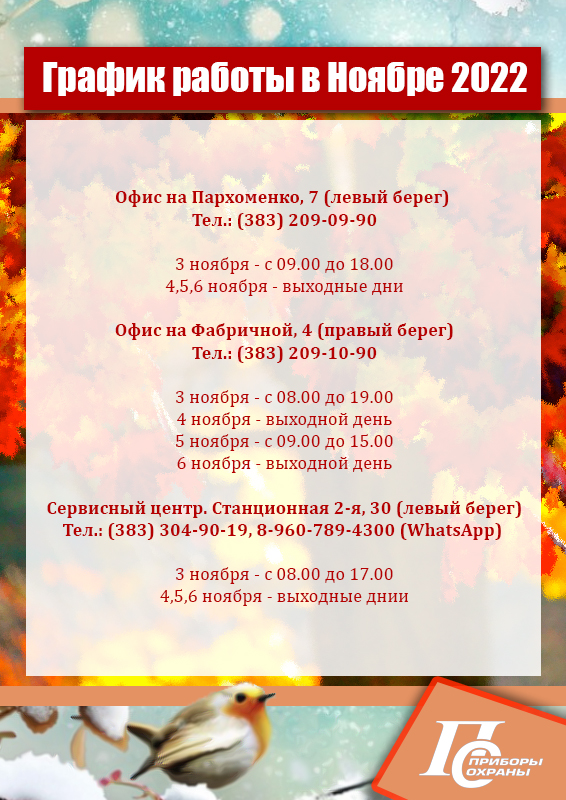 График работы ГК "Приборы охраны" в Ноябре 2022г.