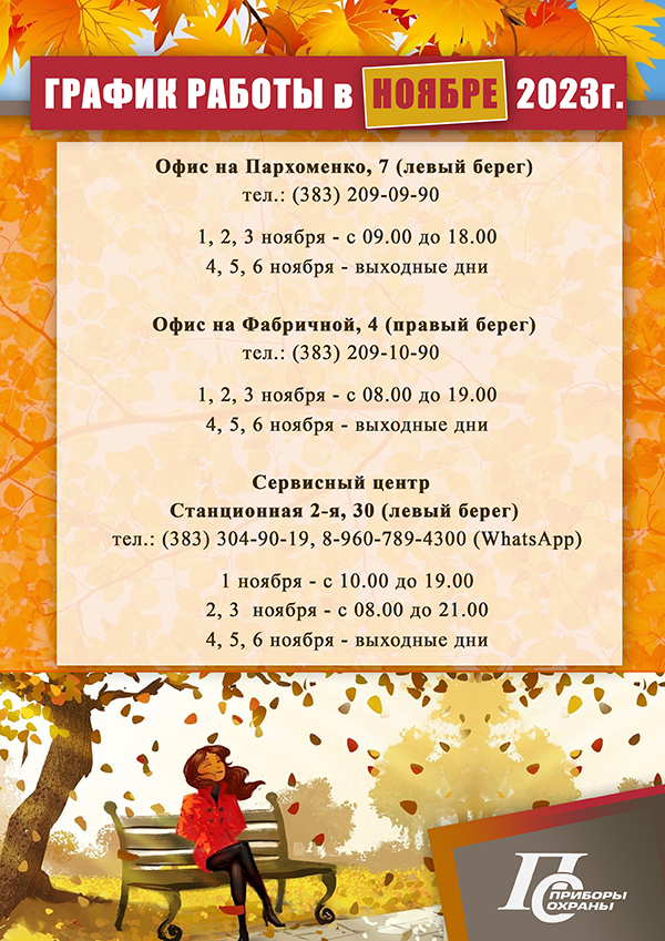 График работы ГК "Приборы охраны" в Ноябре 2023г.