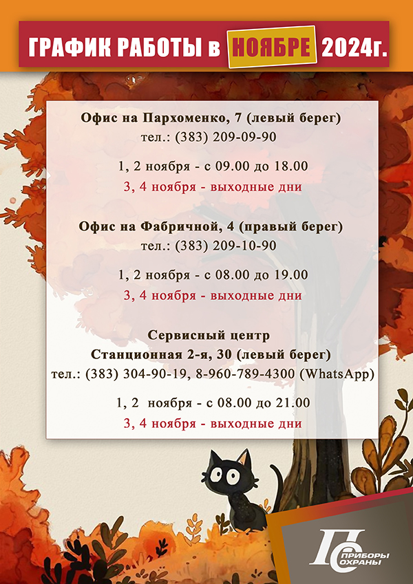 График работы ГК "Приборы охраны" в ноябре 2024г.