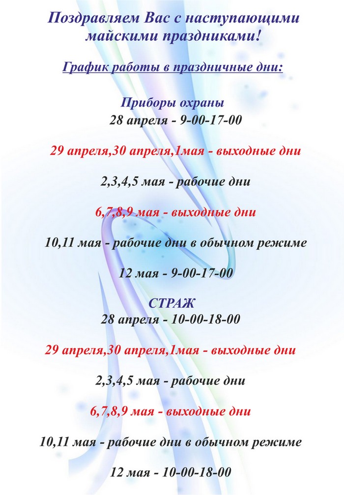 График работы на майские праздники