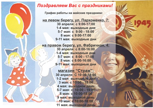 График работы на майские праздники