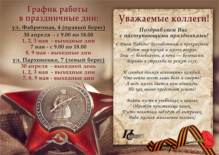 Поздравляем с наступающими праздниками! График работы на май 2016.