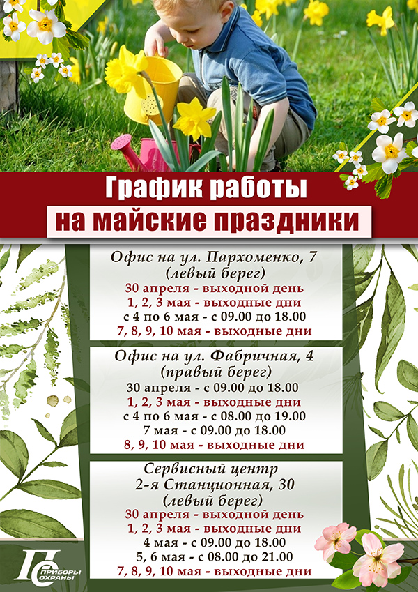 График работы на майские праздники 2022 года!