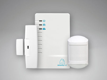 • комплект состоит из абонентского контроллера Security Hub (SH) с аккумуляторной батареей, сетевого адаптера с кабелем USB, радиодатчиков движения и открытия двери/окна с элементами питания. Функционал комплекта расширяется беспроводными датчиками разбития стекла, протечки воды, задымления и др.;