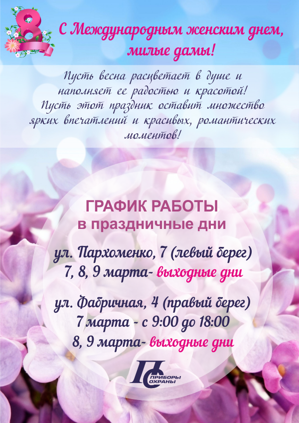 Милые женщины! С прекрасным праздником весны! График работы в праздничные дни
