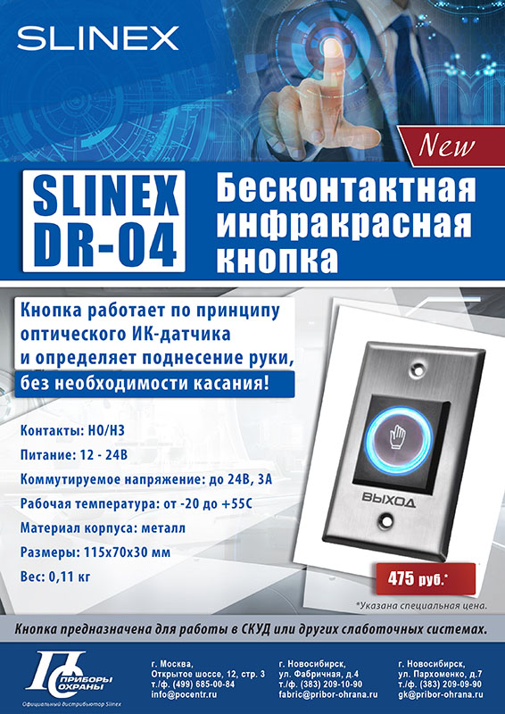 Новинка! Бесконтактная кнопка выхода SLINEX DR-04!