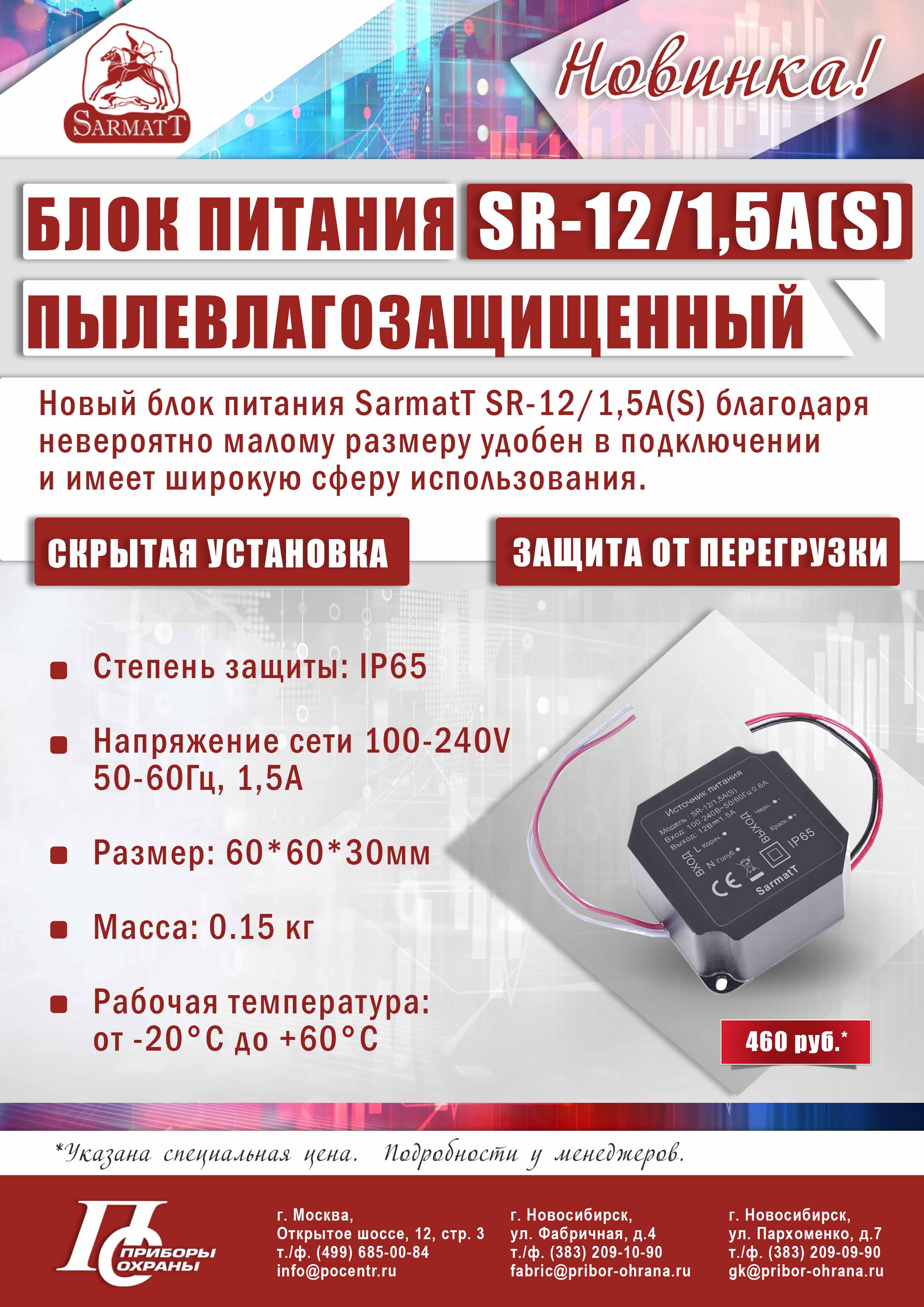 Новинка! Блок питания пылевлагозащищенный SR-12/1,5A(S) от SarmatT уже в продаже!