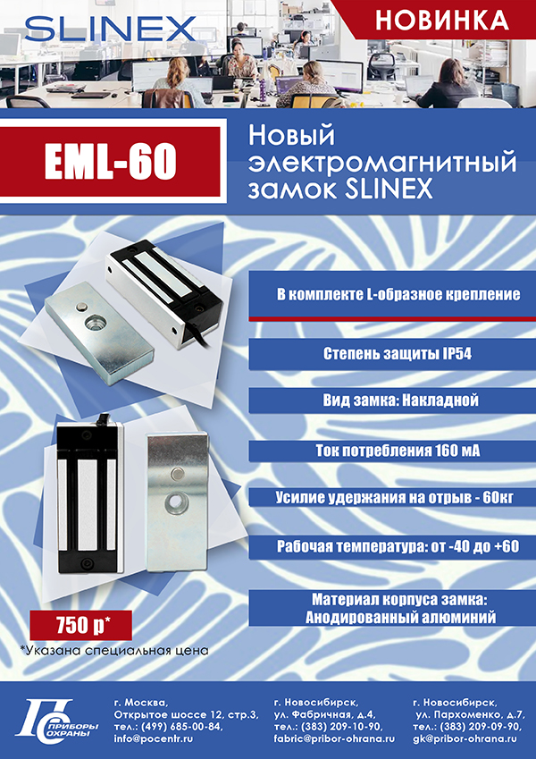 НОВИНКА! Электромагнитный замок EML-60 SLINEX!