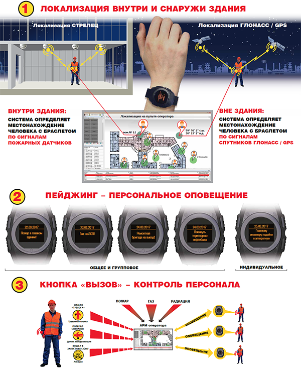1.    Локация персонала, посетителей, грузов, оборудования на территории объекта как ВНУТРИ, так и ВНЕ здания. Решаемые задачи: