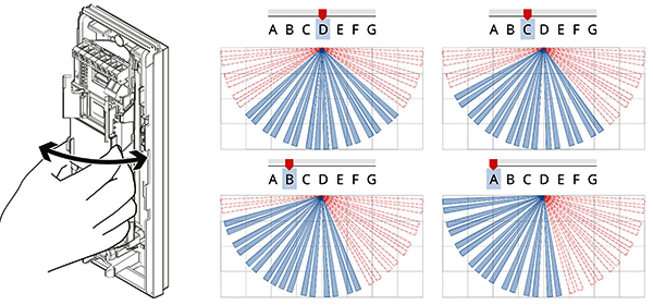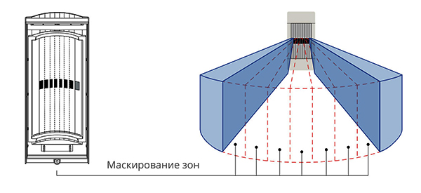 В условиях, когда нежелательно использование номинальной области обнаружения полностью, она может быть изменена за счет  выборочного отключения отдельных зон маскирующими пластинами и ограничения дальности. Дальность рабочей зоны регулируется смещением нижнего пироэлемента на подвижной платформе в одну из предустановленных позиций и может составлять 2,5 м, 3,5 м, 6 м, 8,5 м или 12 м.
