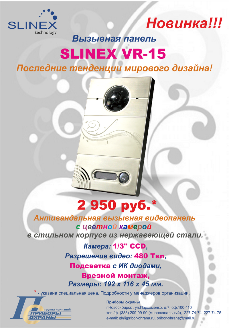 Новинка!!! Стильная вызывная видеопанель SLINEX VR-15!!!