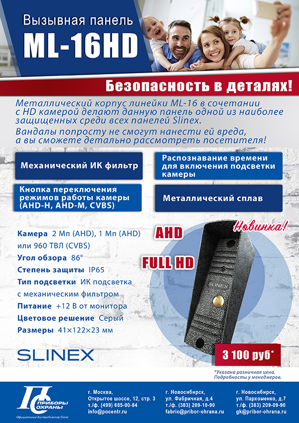 Новинка! Вызывная панель Slinex ML-16HD