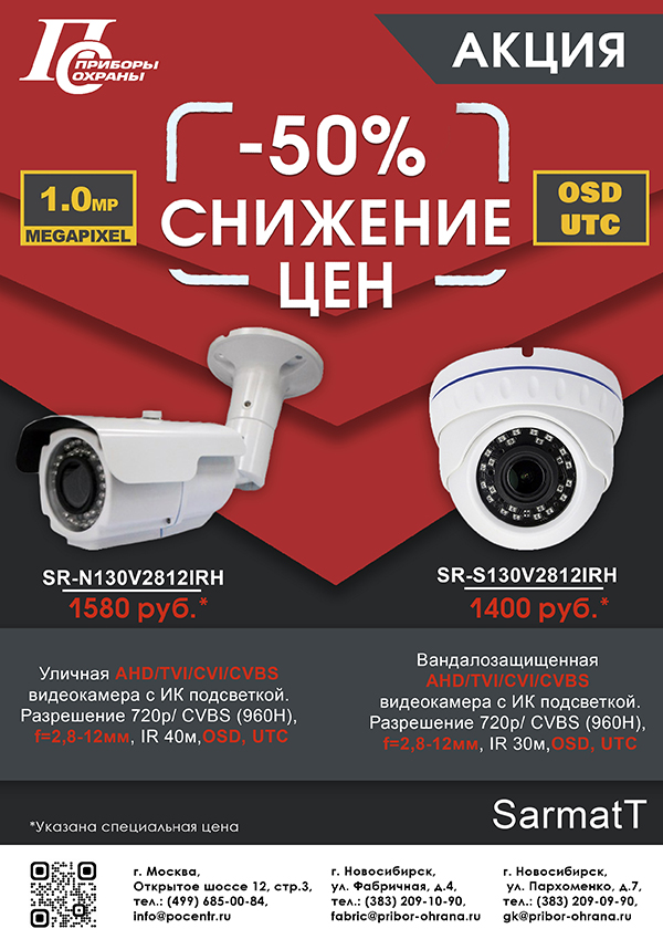 Новость SarmatT! Акция! Снижение цен -50 на 1МП SR-N130V2812IRH и SR-S130V2812IRH!