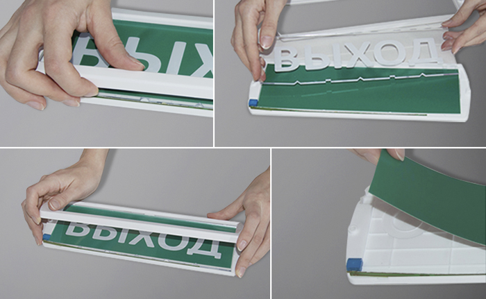 Наличие защелок на крышке, позволяет производить замену надписи.