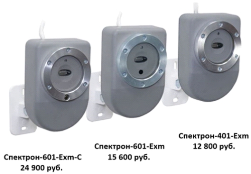 • Спектрон-601-Exm – высокопомехоустойчивый, не реагирует на солнечные излучения, проблесковые маяки спецтехники, У/Ф-излучения;