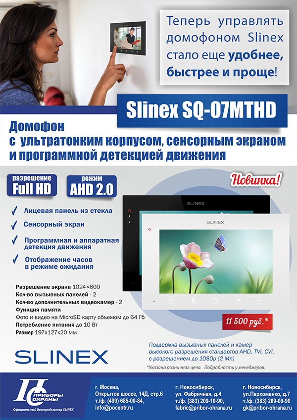 Новый домофон Slinex SQ-07MTHD с ультратонким корпусом и сенсорным экраном
