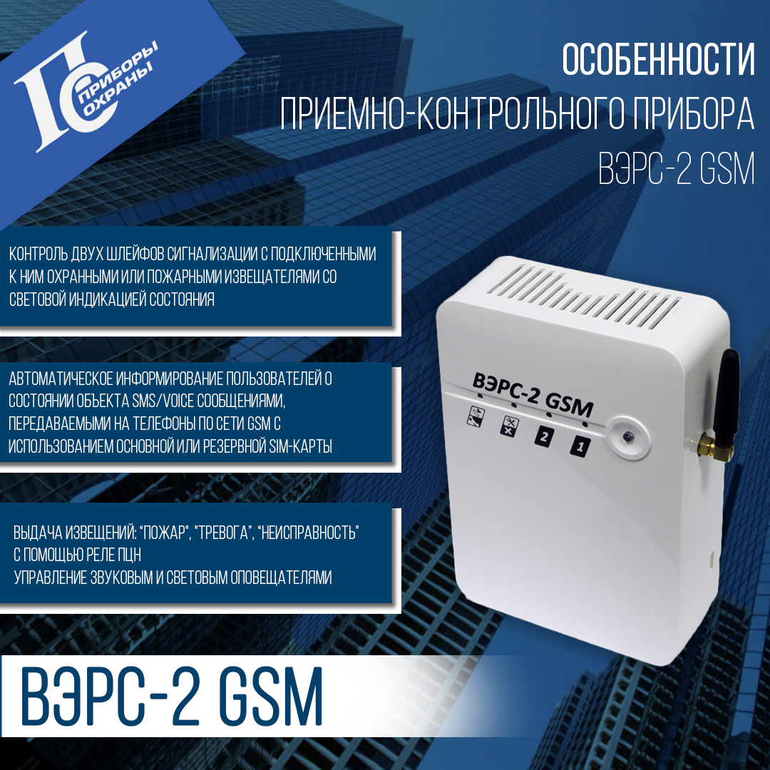 ВЭРС-2 GSM предназначен организации охраны на объектах общего пользования и пожарной охраны для индивидуального использования.