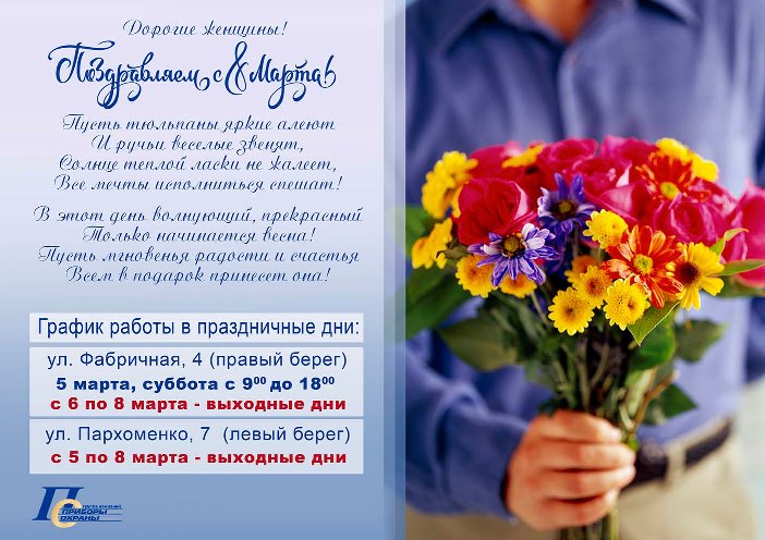 Поздравляем с 8 марта! График работы в праздничные дни.