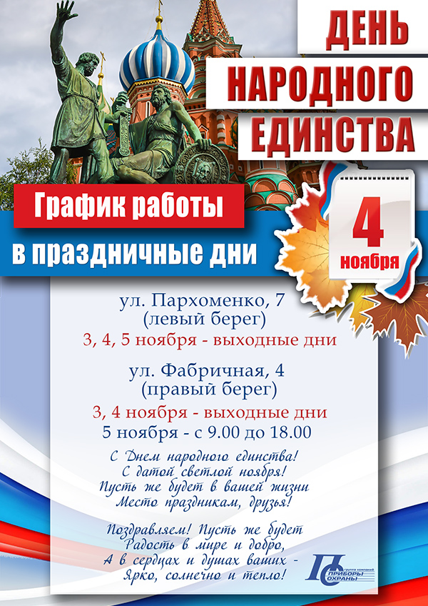 Поздравляем с Днем народного единства! График работы на ноябрь 2018г.