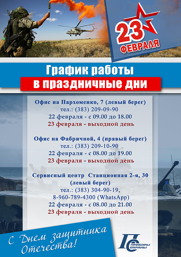Поздравляем с Днем защитника Отечества! График работы в праздничные дни!