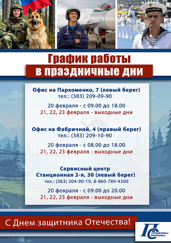 Поздравляем с Днем защитника Отечества! График работы в праздничные дни