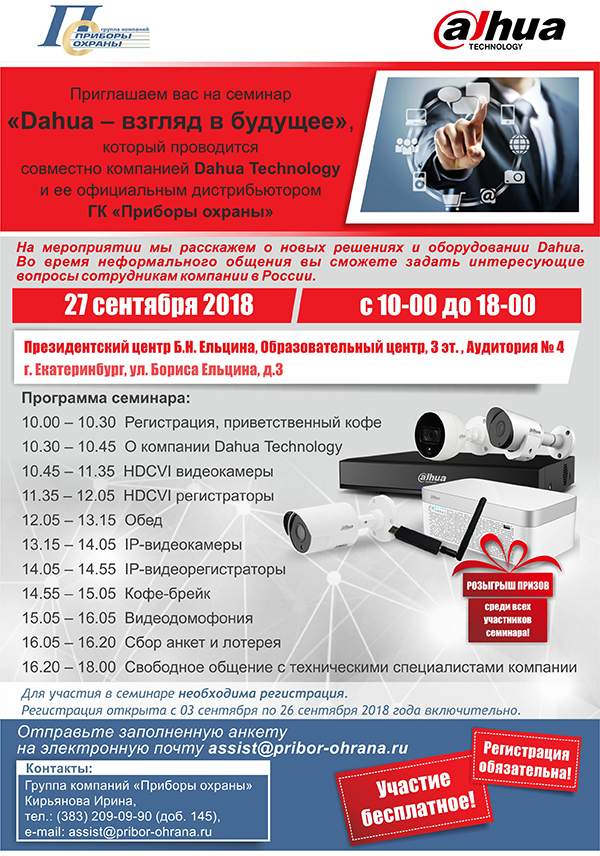 Приглашаем 27 сентября на семинар компании Dahua Technology в Екатеринбурге!