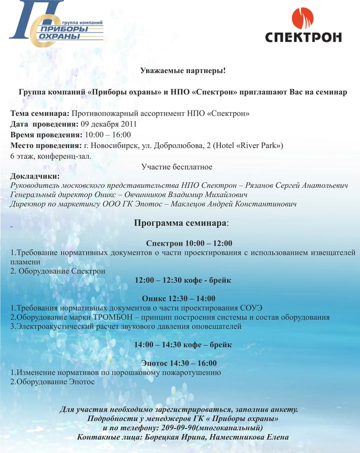 Приглашаем на семинар НПО Спектрон