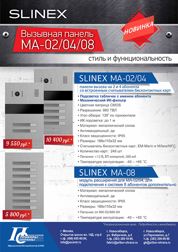 Стильные вызывные панели SLINEX MA-02/04 и модуль расширения MA-08 в наличии!