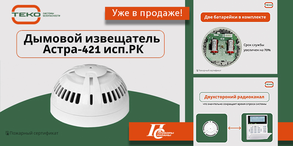 Уже в продаже! Извещатель дымовой пожарный Астра-421 исп. РК