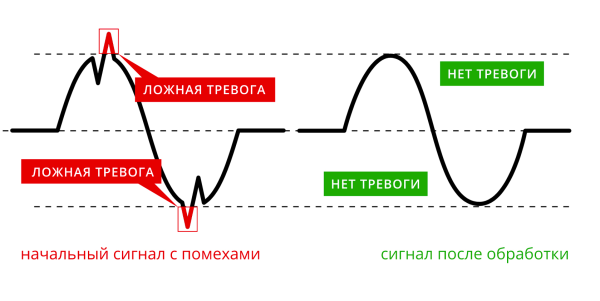 Система шумоподавления отсекает посторонние шумы и разгружает процессор, давая ему возможность анализировать чистый сигнал для более быстрой и стабильной работы. Предварительная обработка сигнала существенно повышает качество детекции и снижает риск ложных срабатываний.